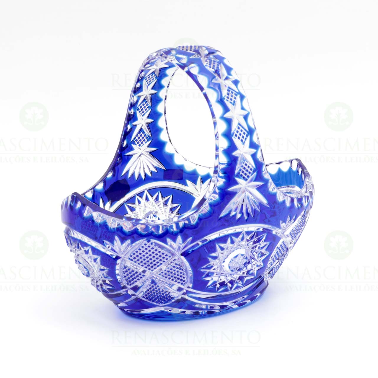 em cristal lapidado, azul e translúcido. Dim.: 20x21,5 cm.