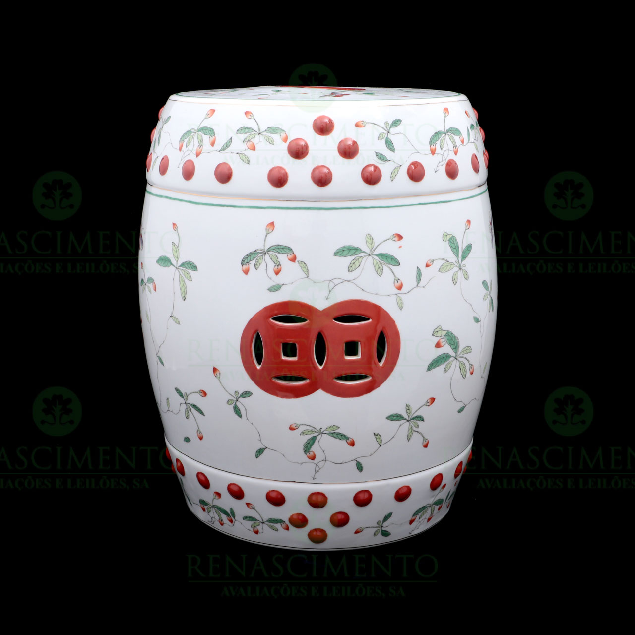 em porcelana policromada com flores e borboletas. Séc. XX. Dim.: 46x37 cm.