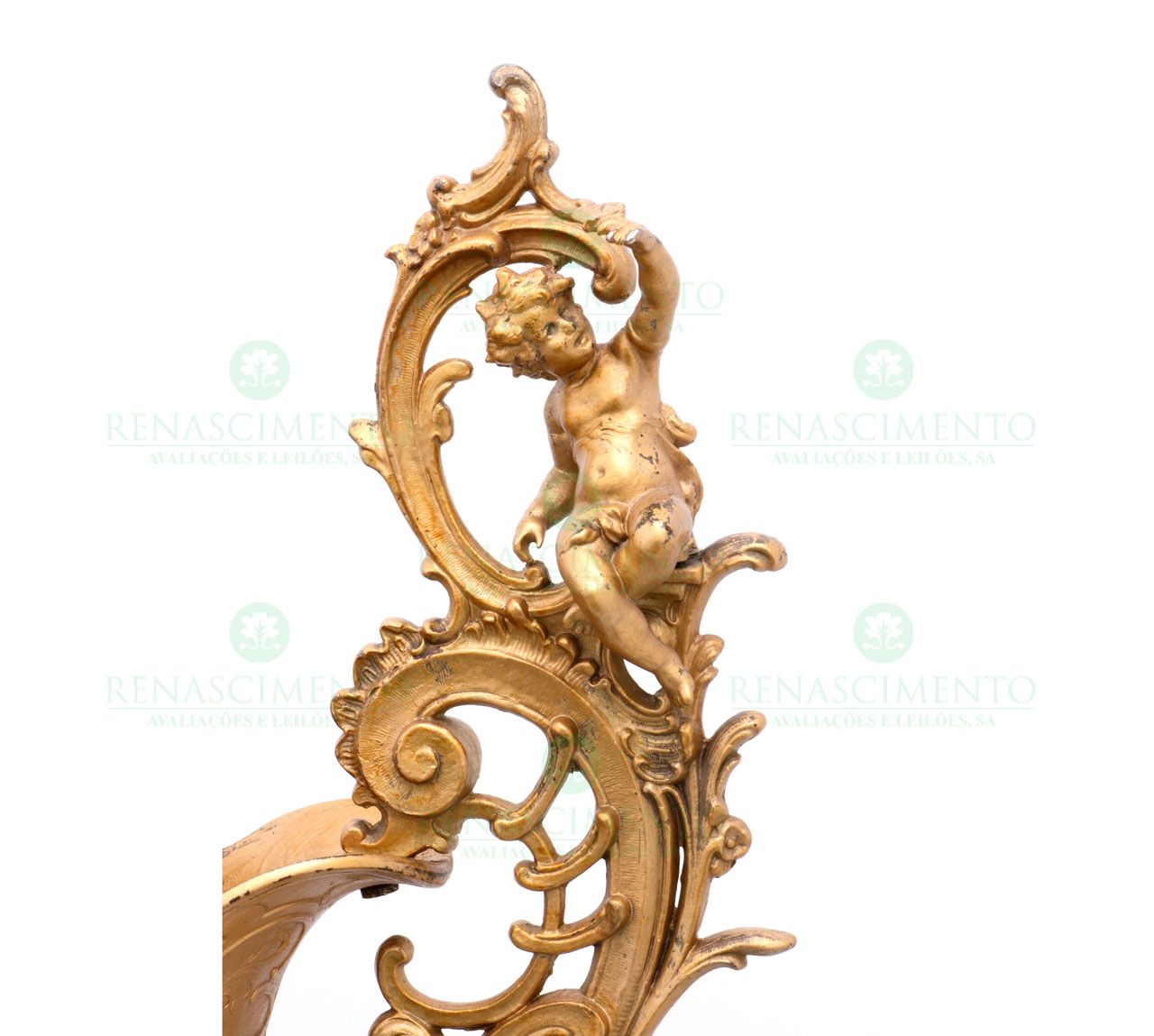 em porcelana chinesa, monocromo sangue-de-boi, com montures românticas em bronze d'art dourado, representando putti, na asa e na base e motivos vegetalistas. Pequenas faltas e defeitos. Alt.: 81,5 cm.