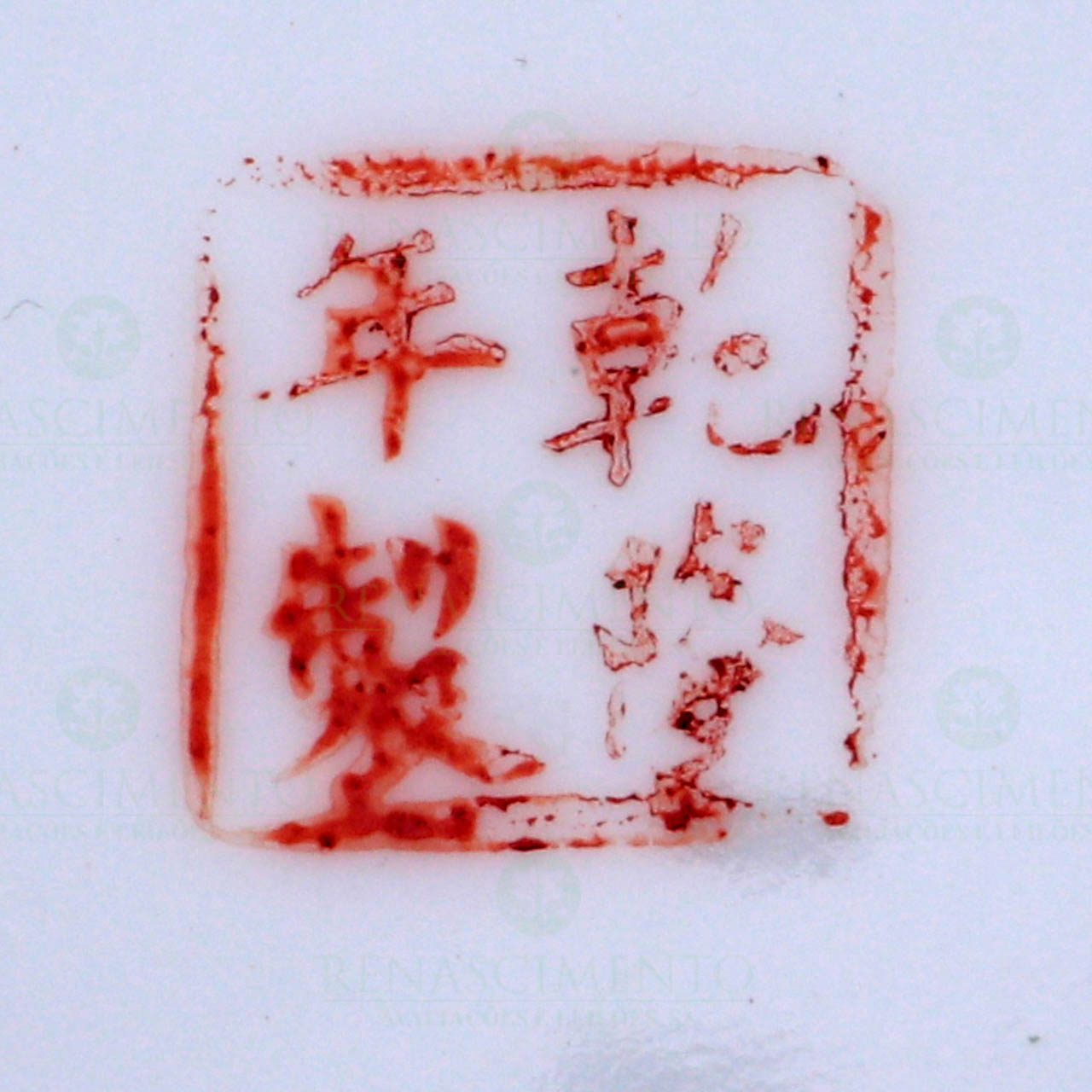 em porcelana chinesa do Séc. XX, policromado com imortais e menino sorridente. Marcado. Diâm. 36 cm.