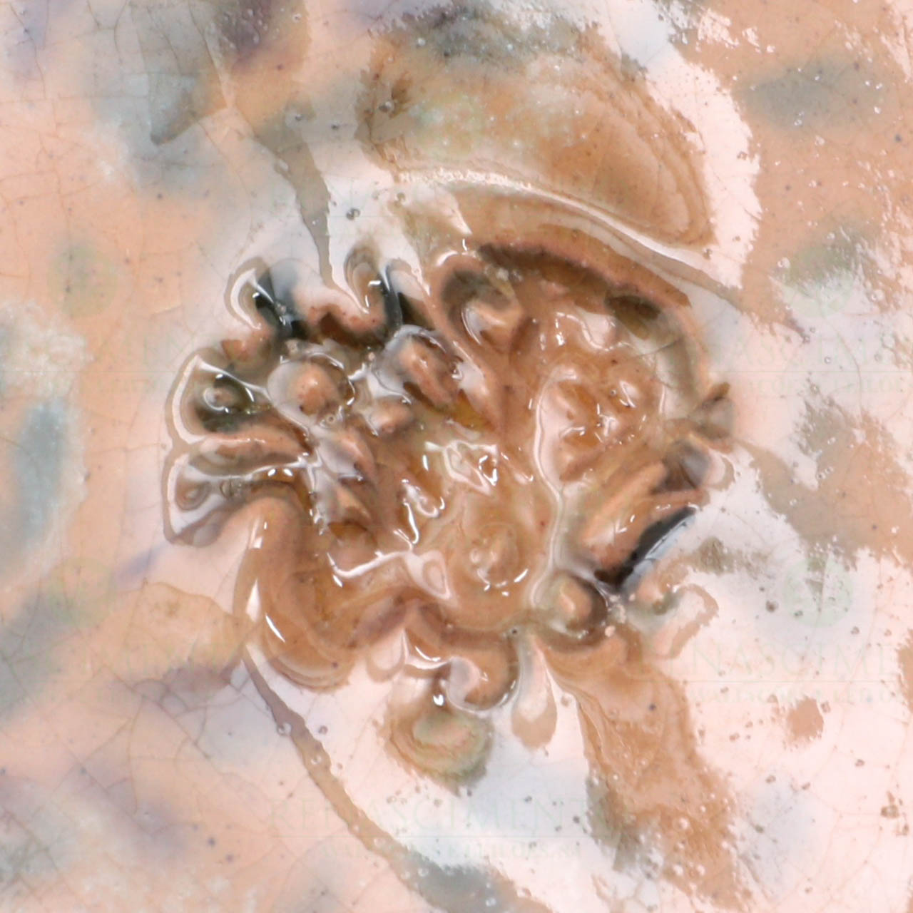 em cerâmica das Caldas, vidrado em tons castanhos e verdes escorridos, decorado com rã relevada. Alt. 21,5 cm.