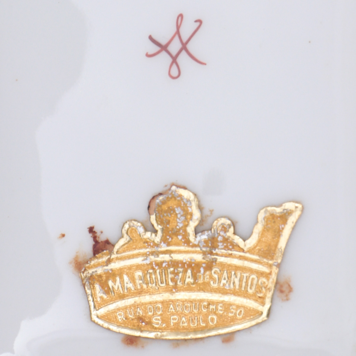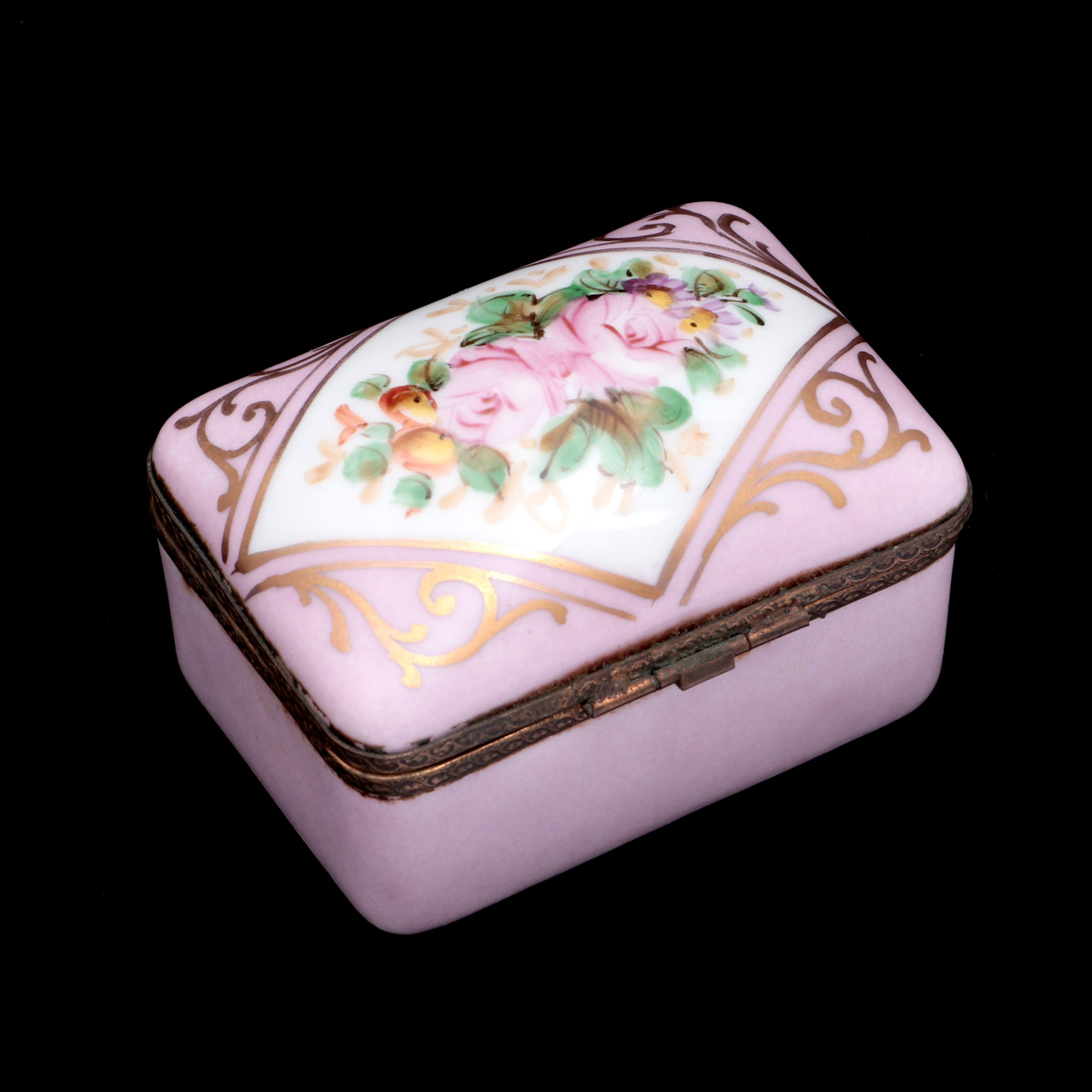 em porcelana francesa do Séc. XIX, decoração policromada com flores. Aro em metal dourado. Comp.: 9 cm.