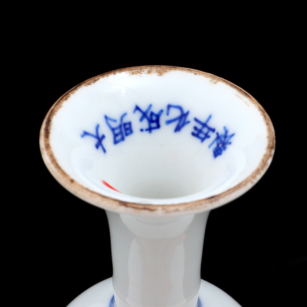 em porcelana chinesa, decoração Doucai com romã, flores e abóboras. Marcada. Alt.: 9,5x7,5 cm.