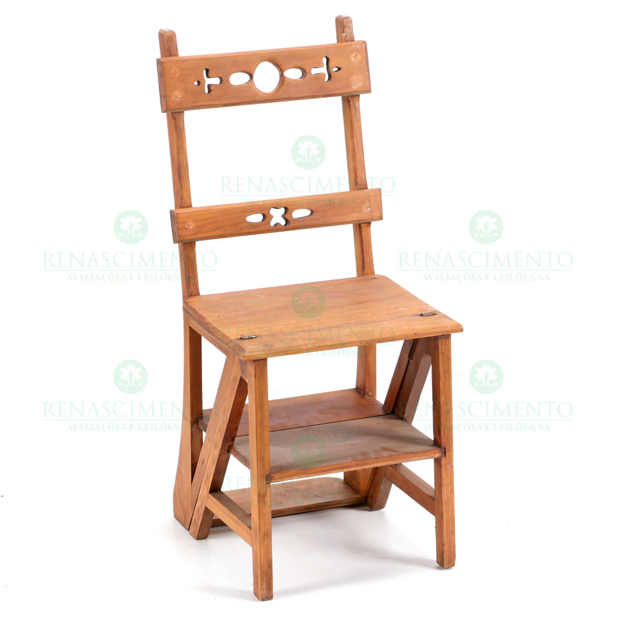 em pinho. Faltas, defeitos e vestígios de xilófagos. Dim. aberta: 91x36,5x64 cm.