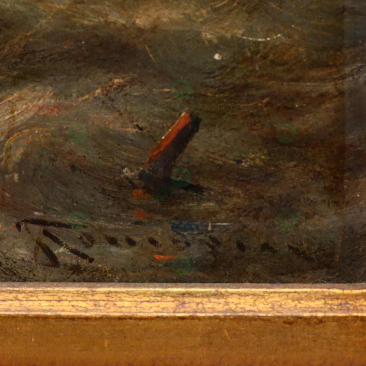 óleo sobre madeira. Assinado. Datado de 1888. Inscrições no verso. Dim.: 25,5x20,5 cm.