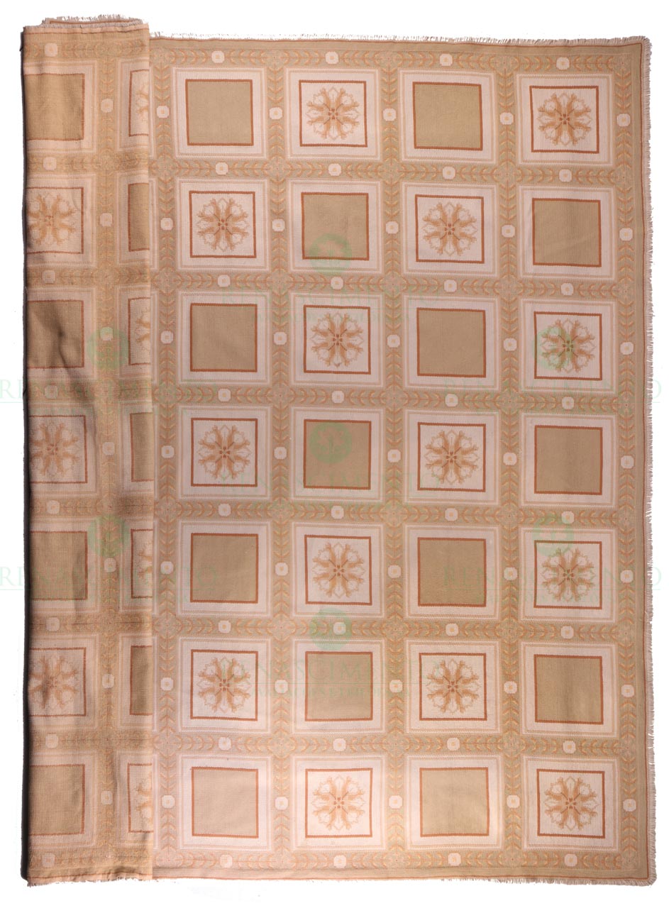 em lã de ponto miúdo, policromado com motivos florais. Dim.: 460x365 cm.