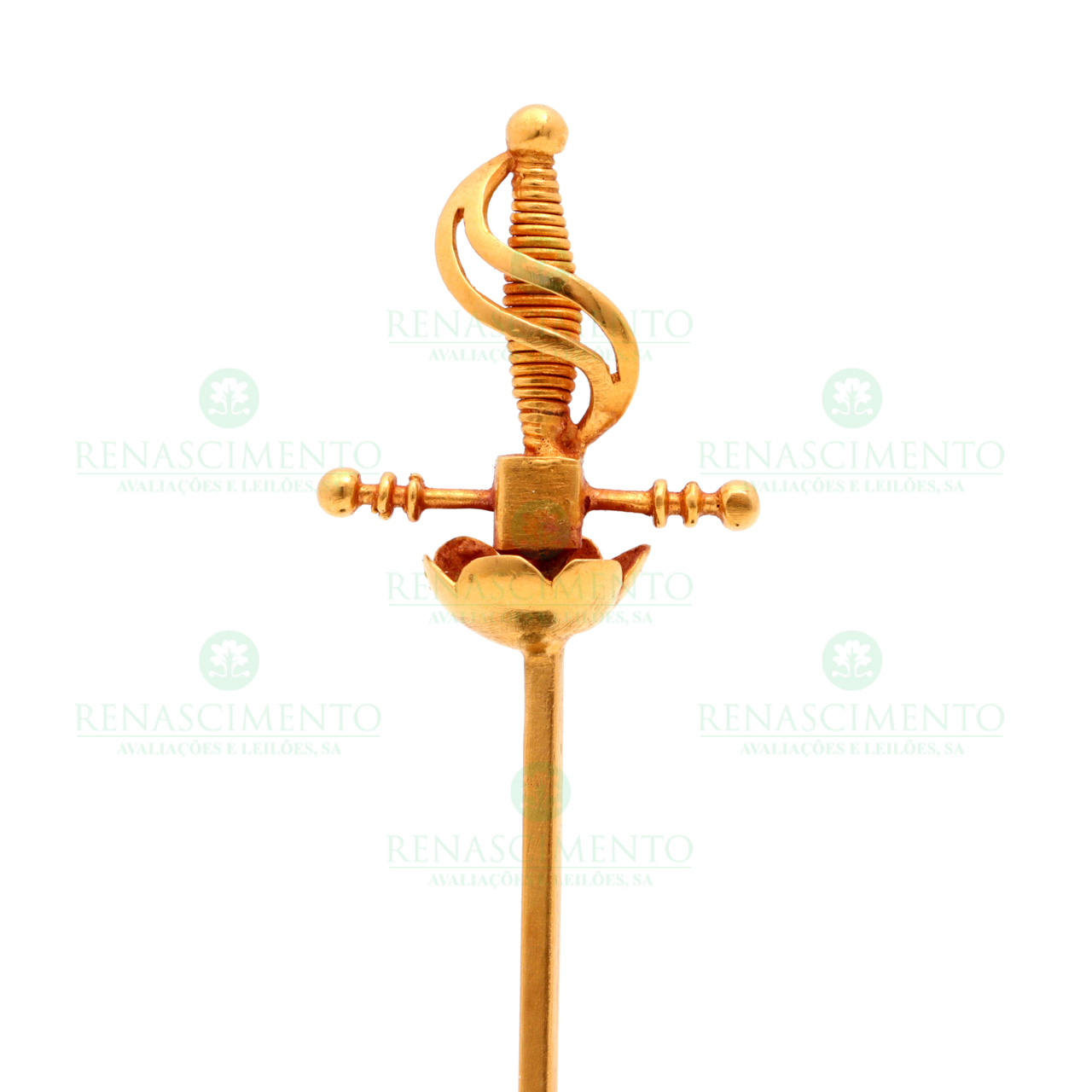 em ouro, Séc. XX (meados), sem marcas, ao abrigo do Decreto-Lei 120/2017, de 15 de Setembro - art. 2º, nº 2, alínea c). Com caixa. Peso: 2,3 g.