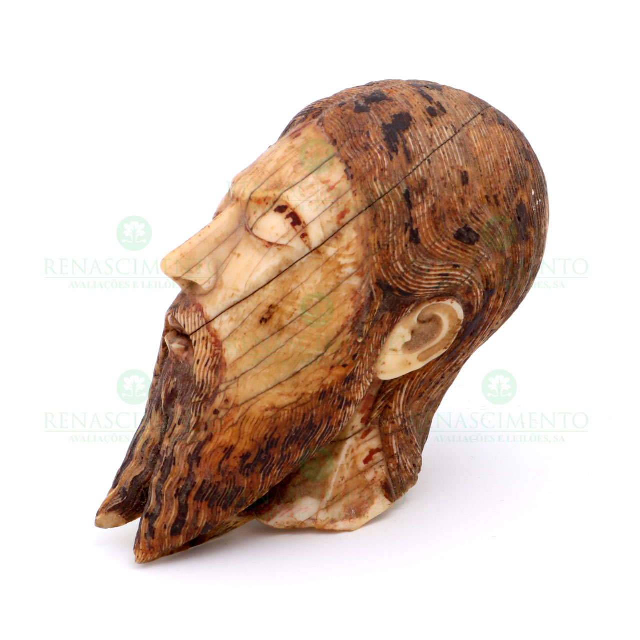 fragmento, Indo-Português, Séc. XVI/XVII, em marfim minuciosamente esculpido, com policromia e com rico detalhe. Dim.: 8,7x4,3x6,5 cm. Peso: 165,8 g.