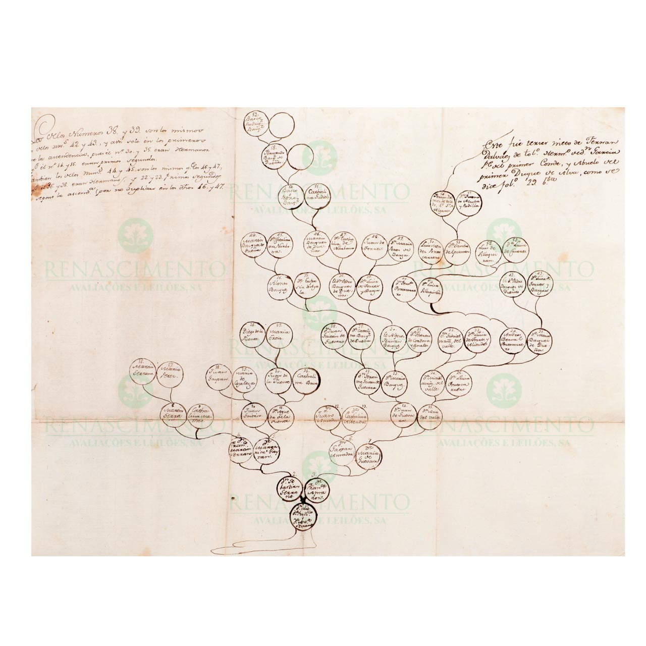 O manuscrito trata as famílias Serrano, Gaitàn, Fuente, Amador, Guevara, Del Valle, Portocarrero, etc... Ilustrado no final com uma folha desdobrável com uma árvore genealógica.
