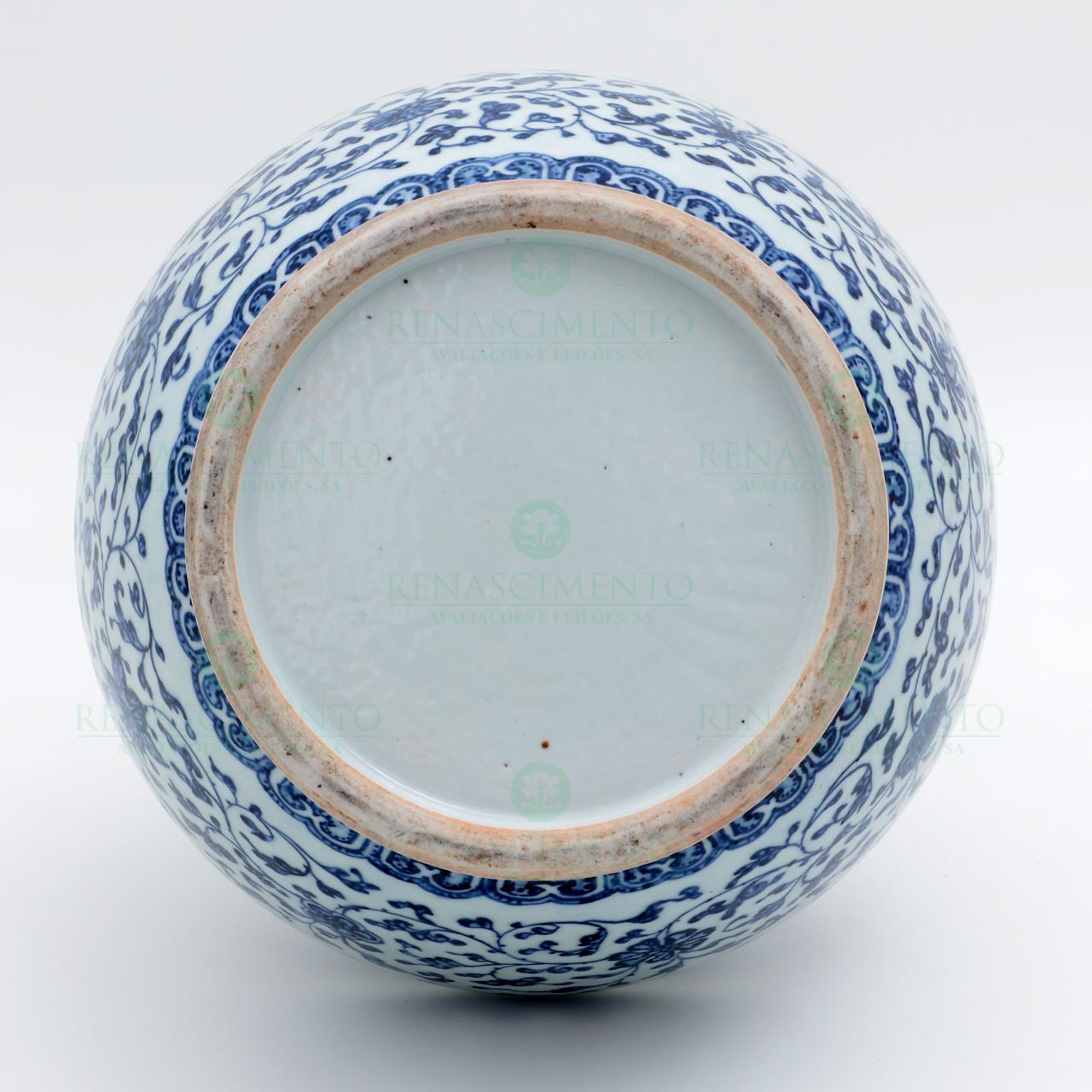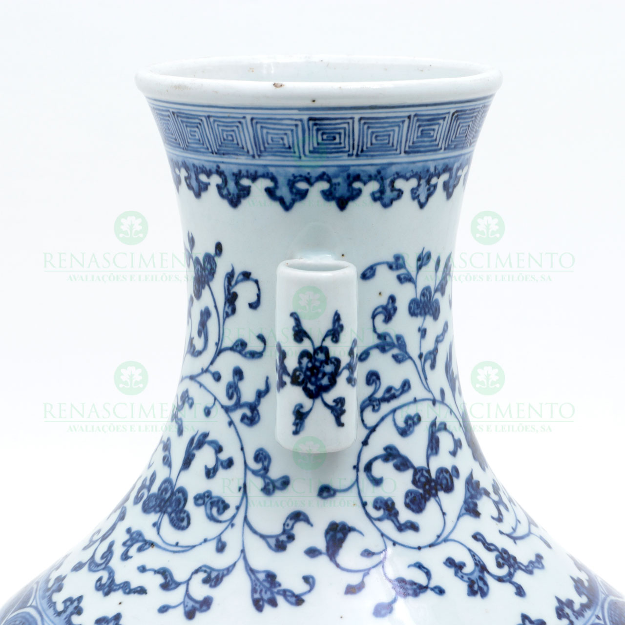 em porcelana chinesa, Dinastia Qing, Séc. XIX, decoração azul e branca com motivos vegetalistas. Alt.: 35,5 cm.