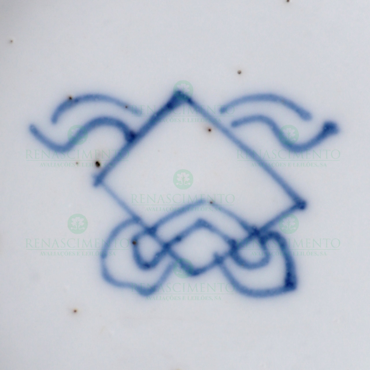 em porcelana chinesa, Dinastia Qing, decoração azul e branca com motivos vegetalistas. Marca apócrifa. Bordo partido e colado e esbeiçadela na base. Alt.: 19,5 cm.