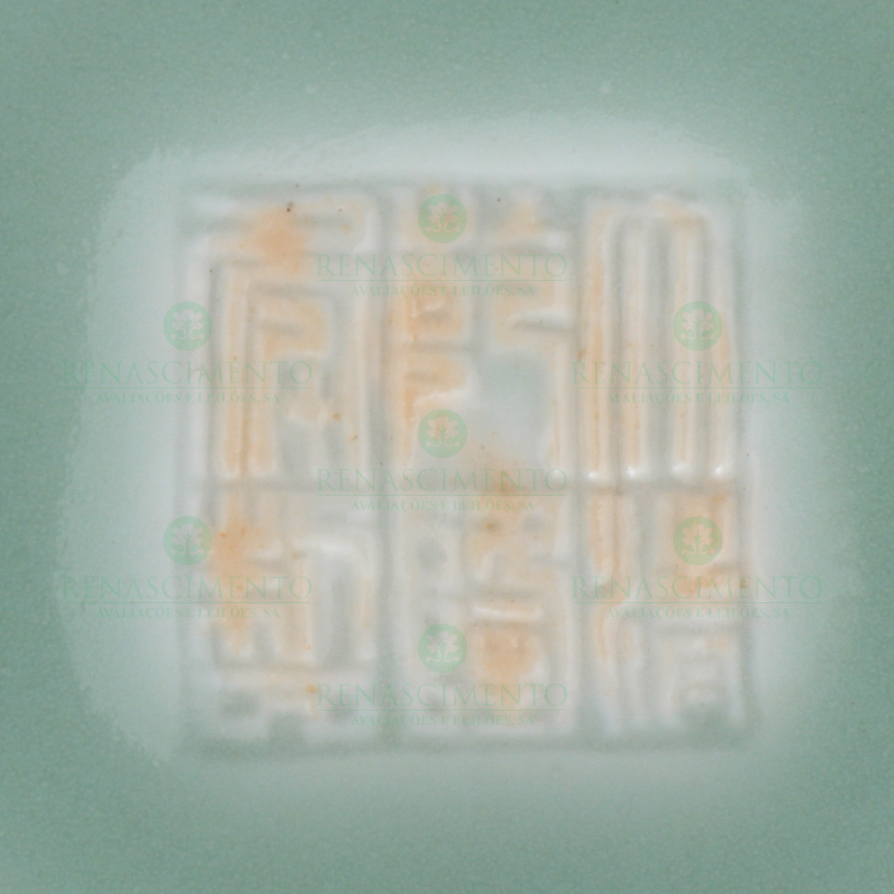 em cerâmica chinesa, decoração Celadon relevada com motivos vegetalistas. Marcas apócrifas Qianlong. Alt.: 23 cm.