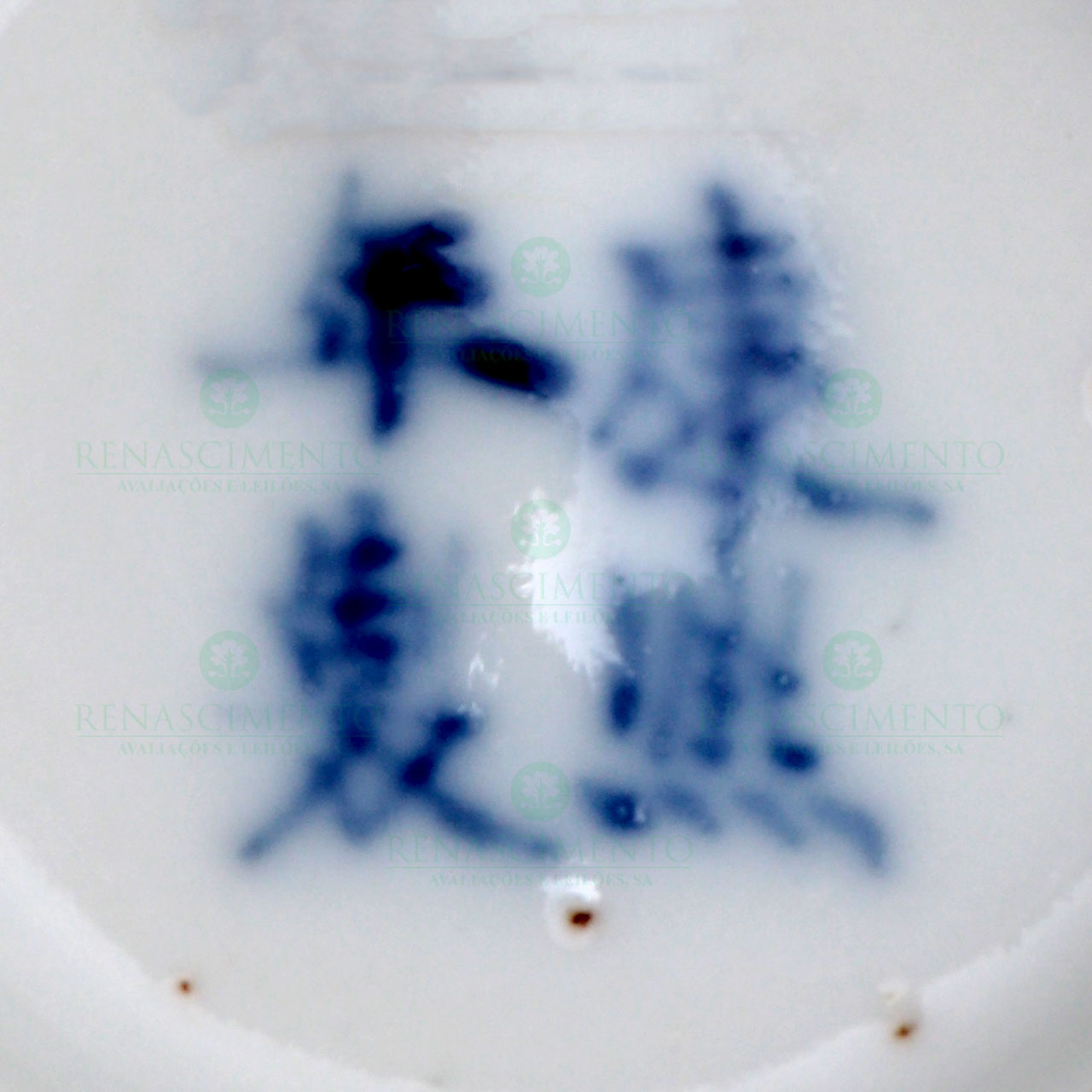 em porcelana chinesa, Dinastia Qing, um decorado com figuras, em fundo negro, alt.: 6,5 cm; o outro de fundo chocolate com duas reservas com esmaltes policromados representando motivos florais, marcado, alt.: 6,5 cm.