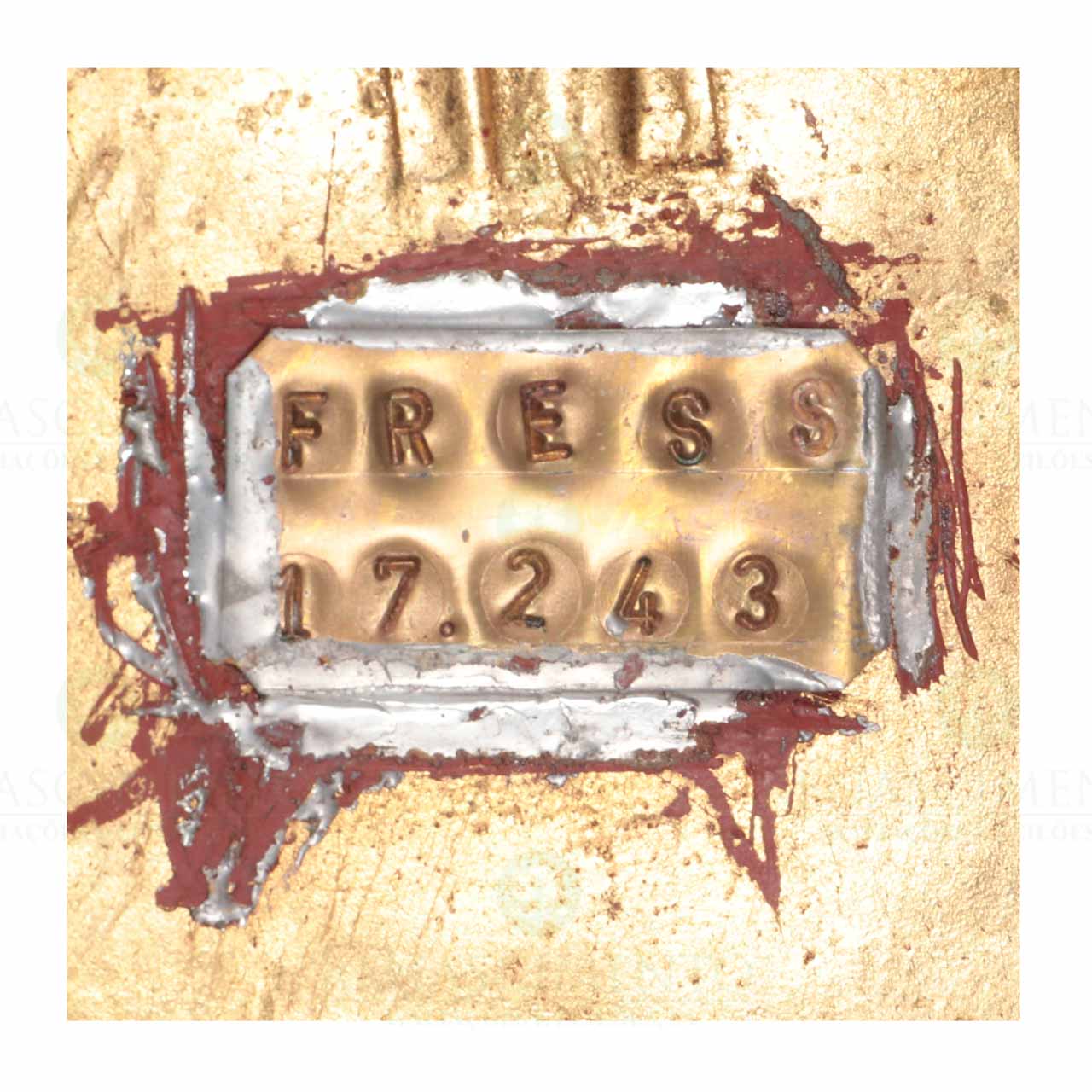 de cinco lumes, em folha dourada com flor e pétalas. Fabrico da "Fundação R.E.S.S. 17243 - 2017". Dim.: 127x68 cm.