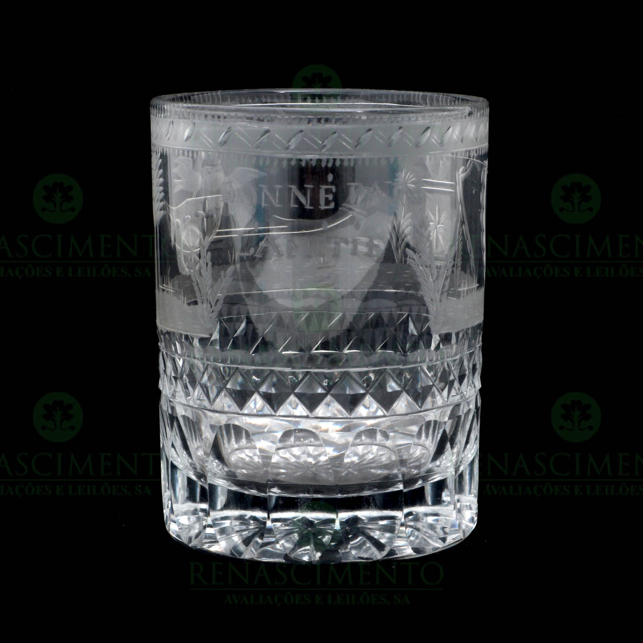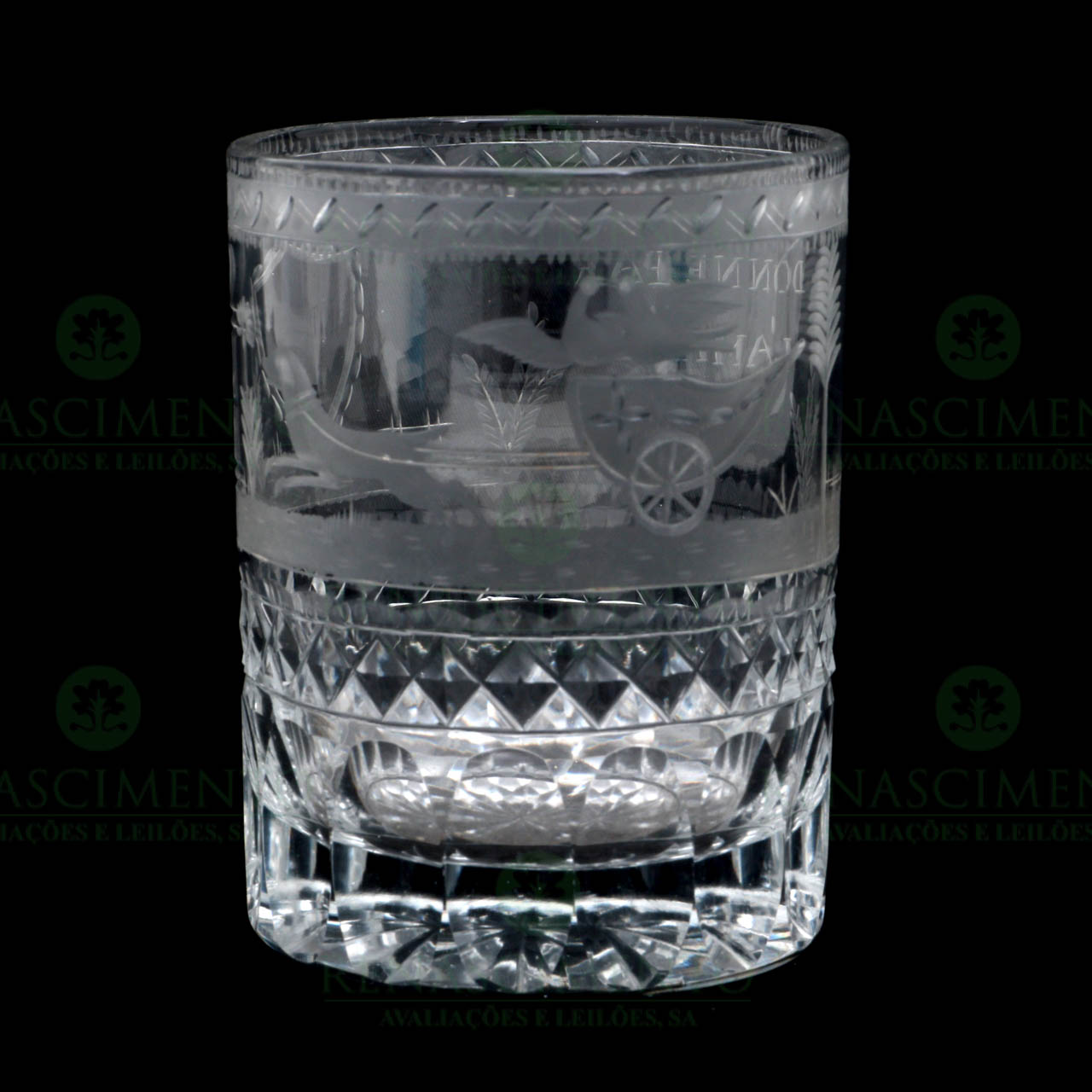 em cristal ricamente lapidado e gravado a ácido, com inscrição "Donné par l' Amitié". Com caixa original em carneira. Início do Séc. XIX. Peça de colecção. Alt.: 9,5 cm.