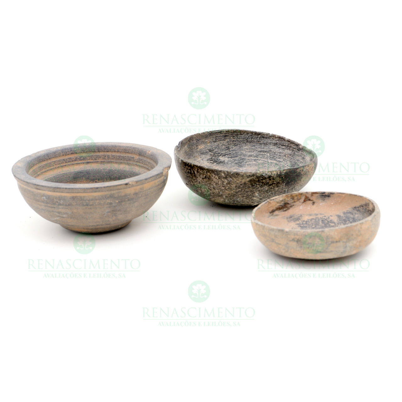 em basalto negro. Antigas. Esbeiçadelas. Diam.: 6,5 cm a 9 cm.