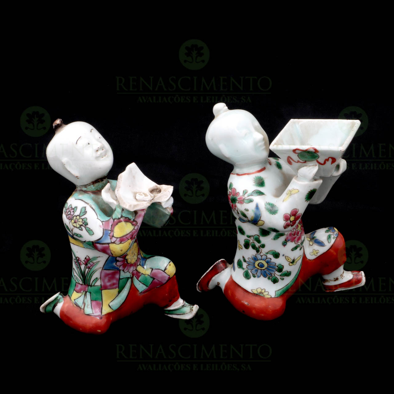 em porcelana chinesa de exportação, Dinastia Qing, Séc. XIX, com esmaltes da Família Rosa e objectos preciosos. Falta de uma taça. Alt.: 15 cm.