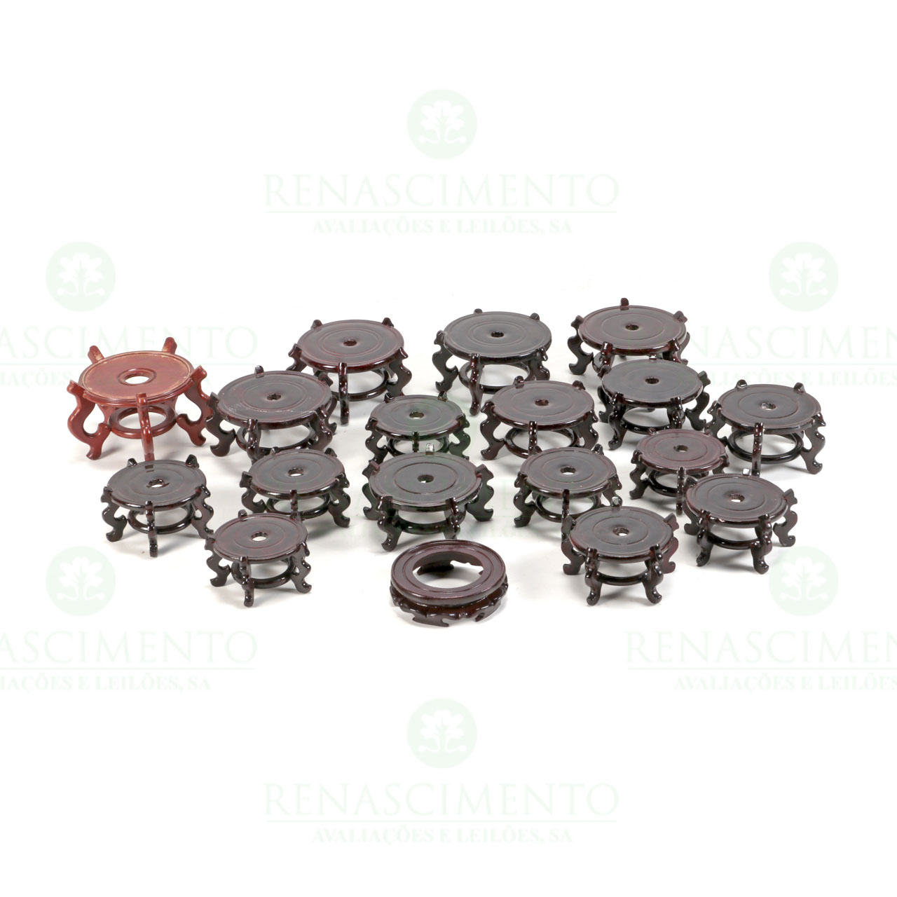 em madeira escurecida de diferentes tamanhos. Sinais de uso.