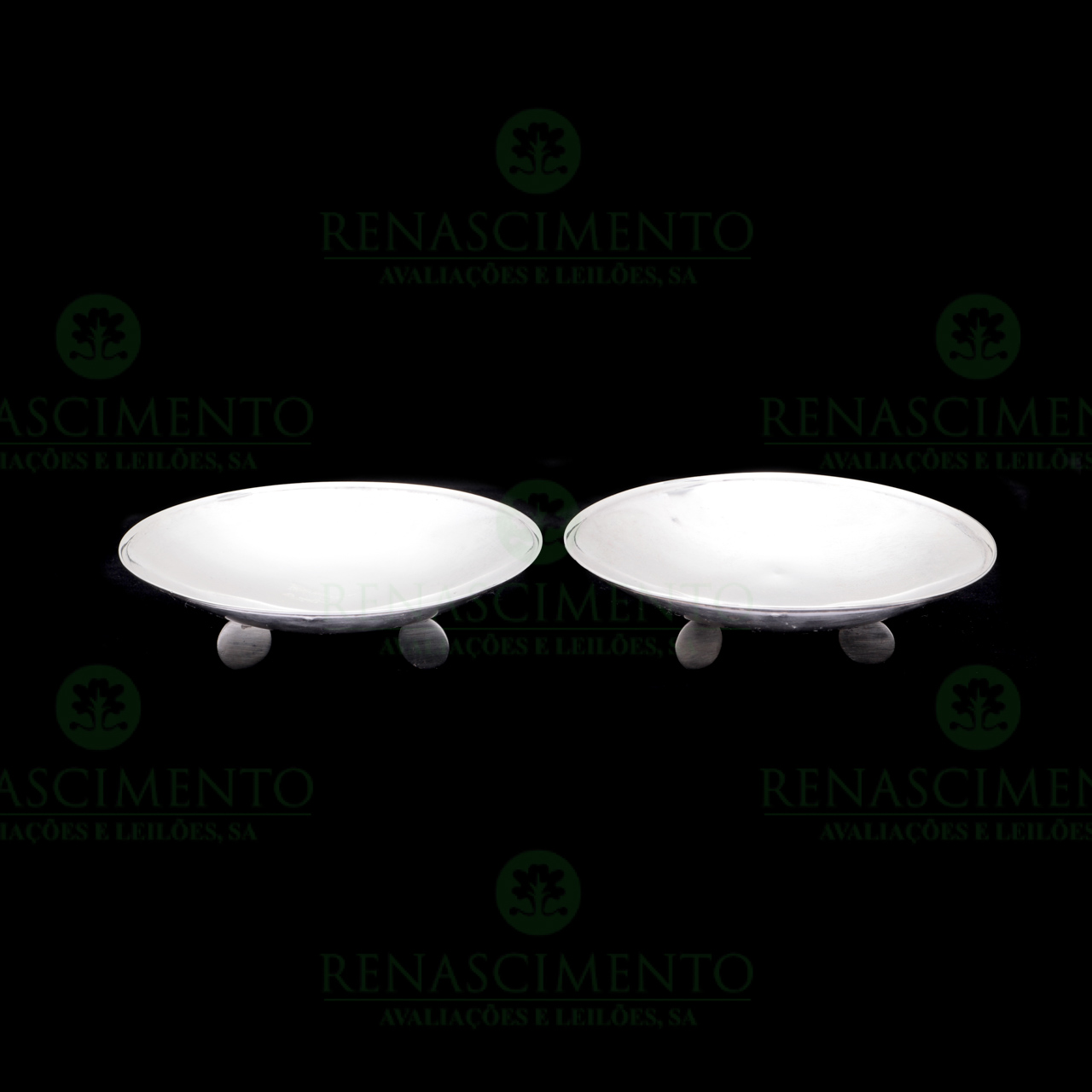 em prata de 833/000, contraste do Porto (1887-1937). Sinais de uso e uma com pequenas amolgadelas. Diam.: 13,5 cm. Peso: 230,5 g.
