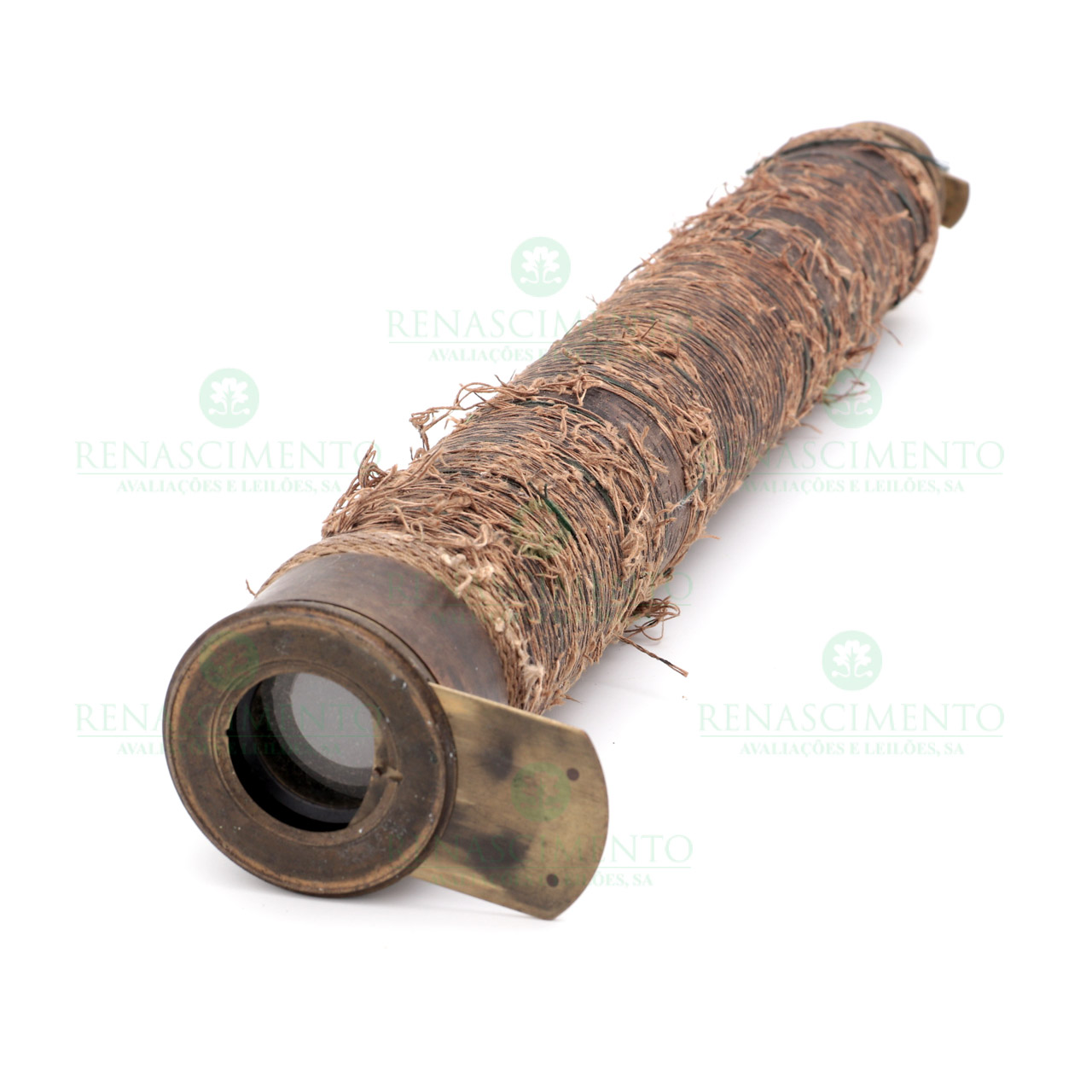 em metal amarelo, revestido a madeira e tecido. Europa, Séc. XIX. Sinais de uso e vestígios de xilófagos.